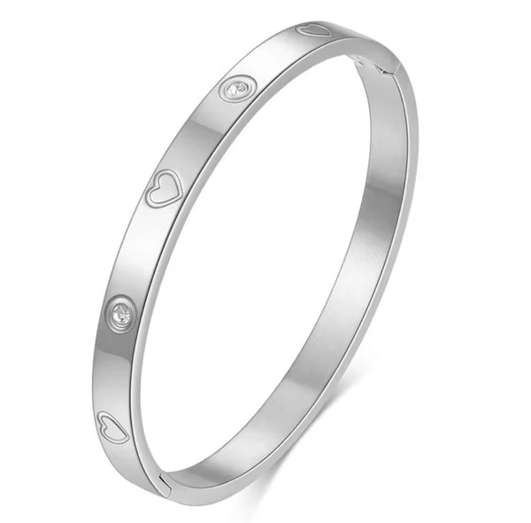 Bracciale Rigido Strass e cuori